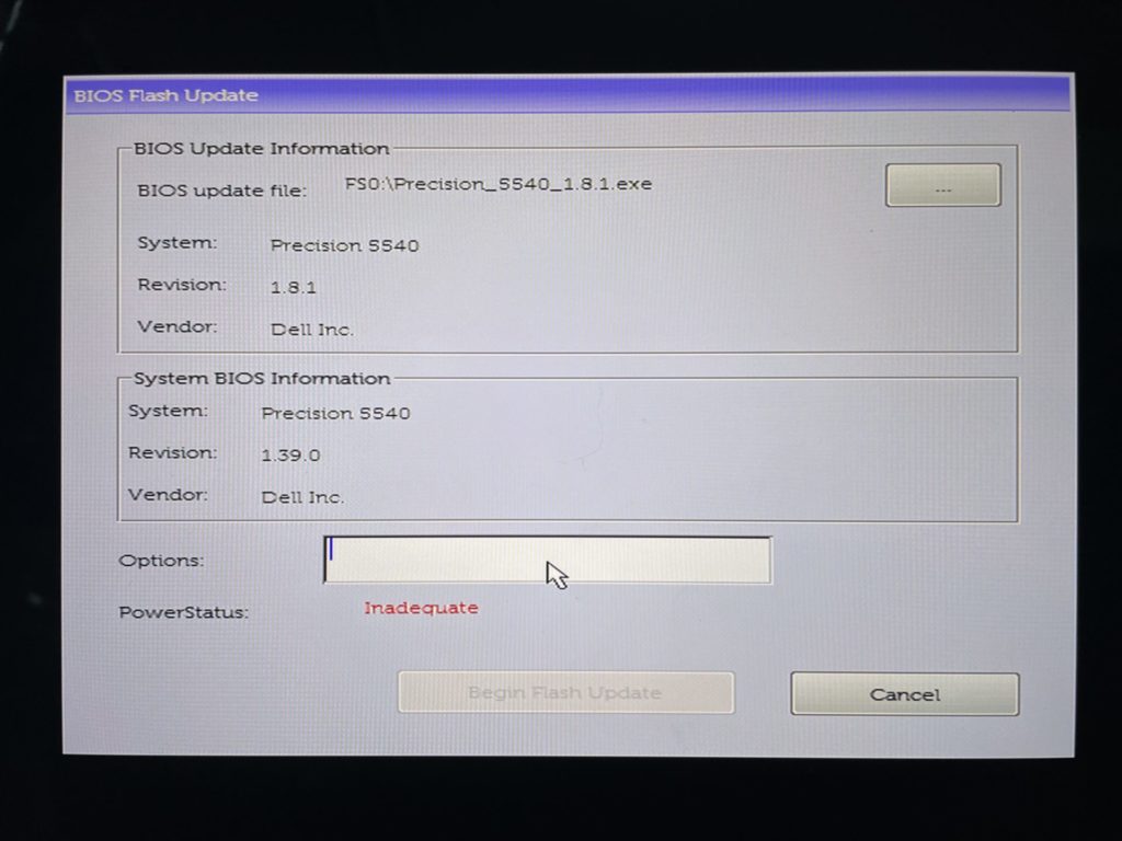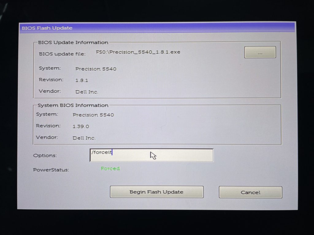 デル製ノートパソコンでACアダプターが接続されていない状態で強制BIOSアップデートをする