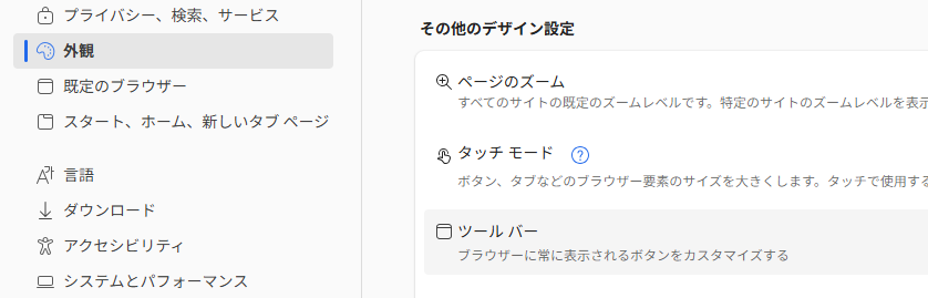 設定 >既定のブラウザ >Internet Explorer の互換性 で、Internet Explorer モードの設定を「許可」に変更する。