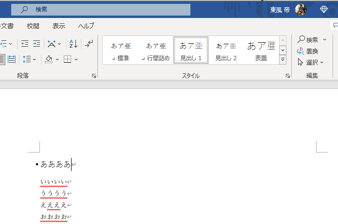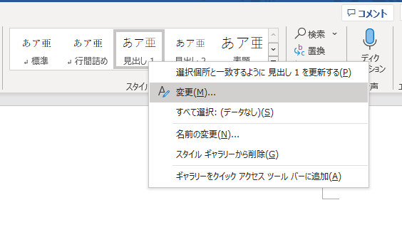(ここで「スタイル」を変更すると、見出しのスタイルを変更できる。)