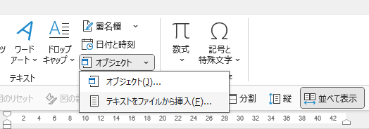 挿入タブ >オブジェクト >テキストをファイルから挿入